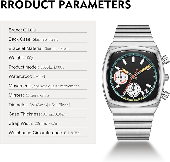 - ACCURATE TIME KEEPING: CILOA watches for men to provide stable and accurate travel time for the watch, it will always tell you accurate time in any occasions or important moments. Classic mens watches, fashion hands/markers, calendar window and two chronograph subdials, provide more functions and allow you to easily grasp the rhythm of time