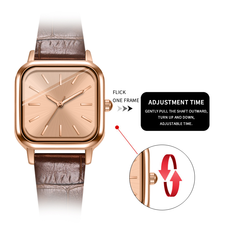 Classic Minimalist Square Watch Custom Logo Leather Strap 3ATM Water Resistant Japan Movement Quartz Women Watches NO LOGO