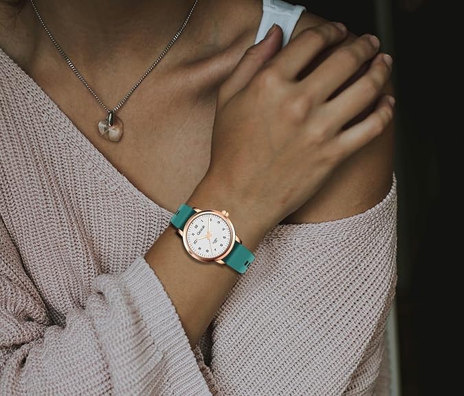 - VERSATILE DESIGN: Fashion-forward watch featuring a clean white dial with easy-to-read Arabic numerals, rose gold case, and multiple silicone band color options