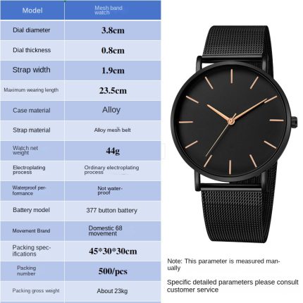 High Quality No Logo Simple Wristwatch Casual Men and Women Watch Gift Mesh Stainless Steel Band Unisex Thin Minimalist Watch